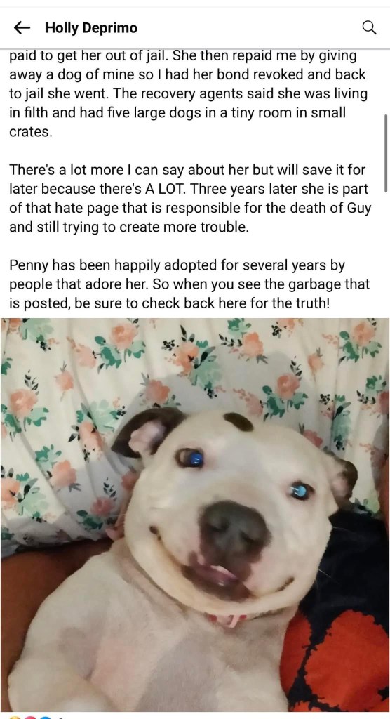 Furthermore on Penny you brought her to Kirston without vaccinations and without being fixed and she paid for all of that through her job by having it taken out of her check. Again care you didn’t provide for an animal suppose to be in your care.