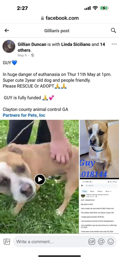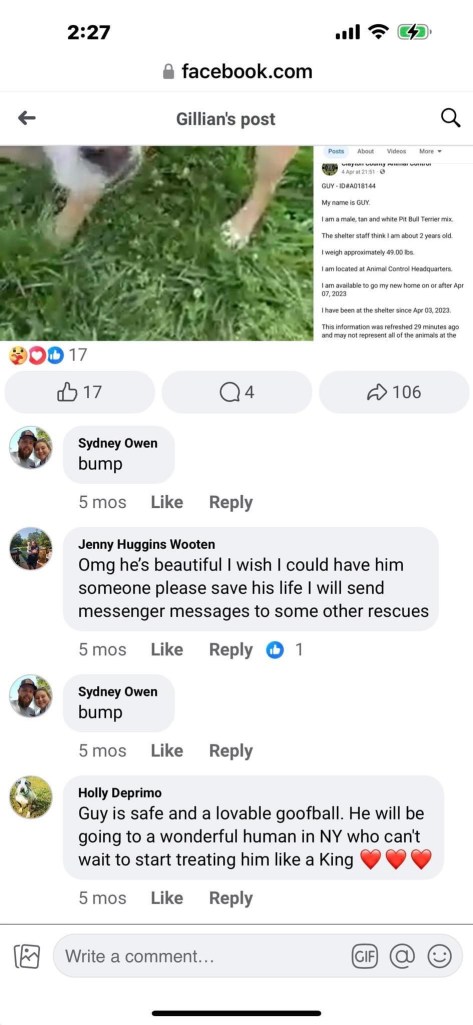 Recently, I was able to unearth a lot of interesting information about Holly. I found a post about Guy when he was originally posted by Gillian and was advertised as being fully funded and was ready to go to his new home on May 9, 2023. This raises the questions of where are all the funds on this dog and how much exactly? Holly, do you care to answer that?
