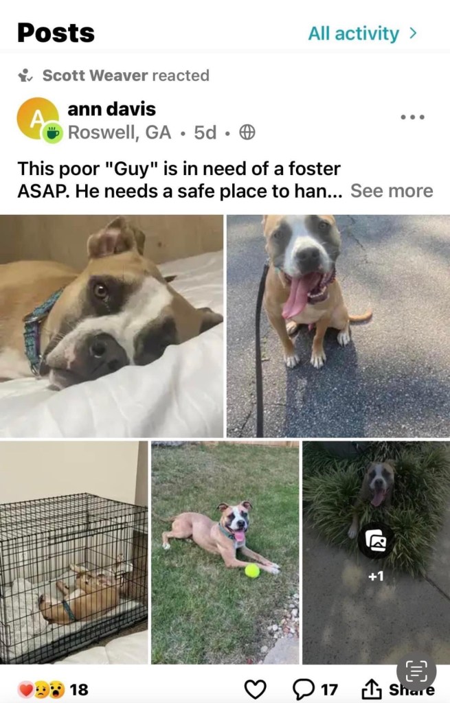 Someone asked me if I have a list of dogs that Holly has pulled. The answer is both yes and no. While we know some of the dogs, we don’t know all of them, unfortunately. I can only track what I can see and the information people give me. Today, I was given information that Holly is again trying to post about Guy using the aliases Holly Brooks and Ann Davis on Facebook.