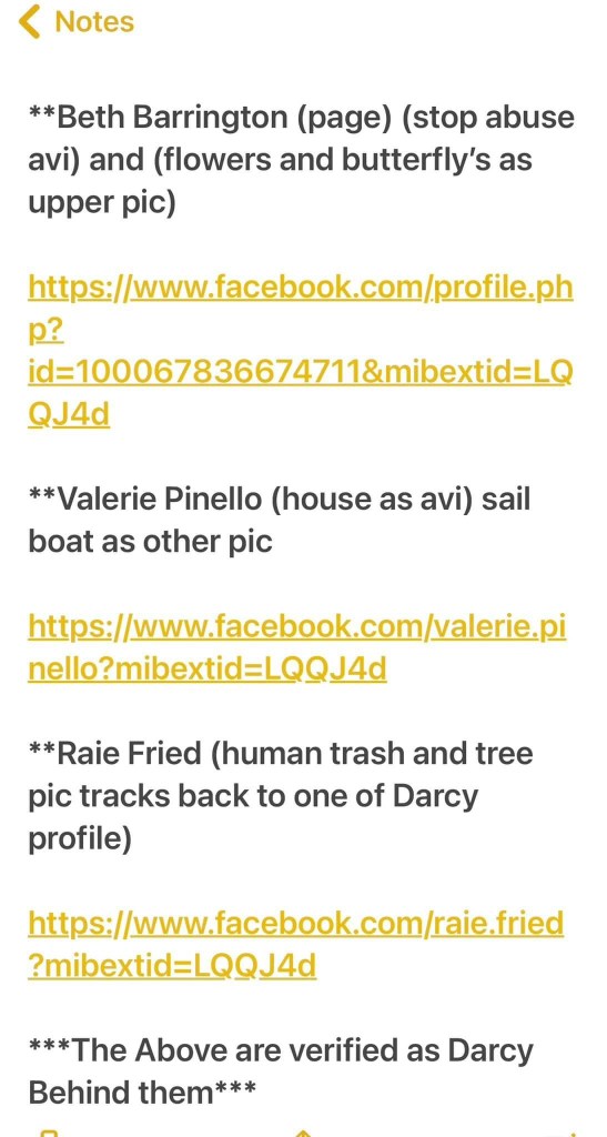 Here is a follow up to the Darcy Alias Names Post along with pictures of most of the accounts…. Plus her testifying to being some of them under oath. 😉