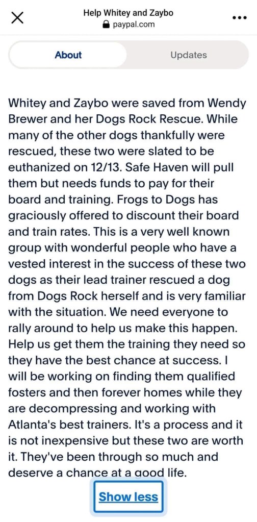 - NOT ACCOUNTING for the FUNDS you raise for dogs you say you rescue