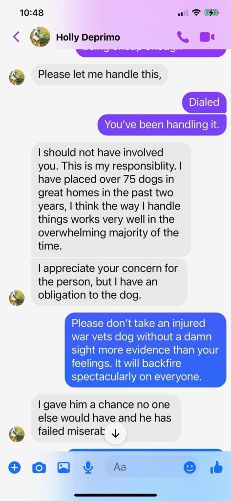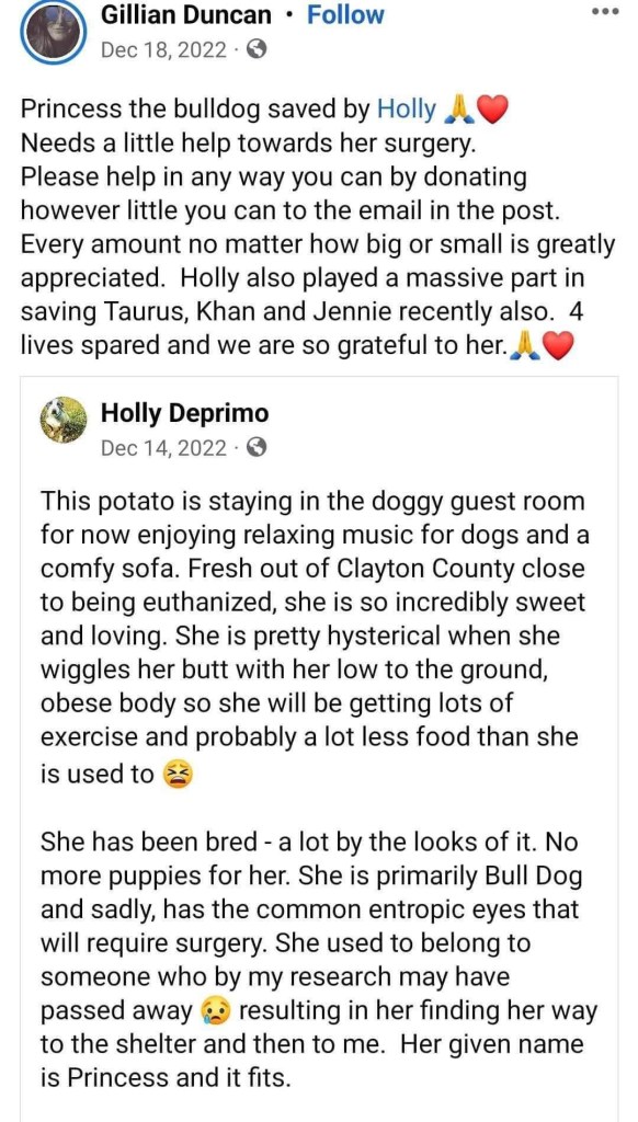 For far too long, Holly Deprimo has pointed her finger and FABRICATED all info in her FB posts & comments when she consistently calls out other people in rescue. NOT ONE SHRED OF PROOF does she provide – she just has diarrhea of a very “want to be rescuer” mouth. But, I digress….