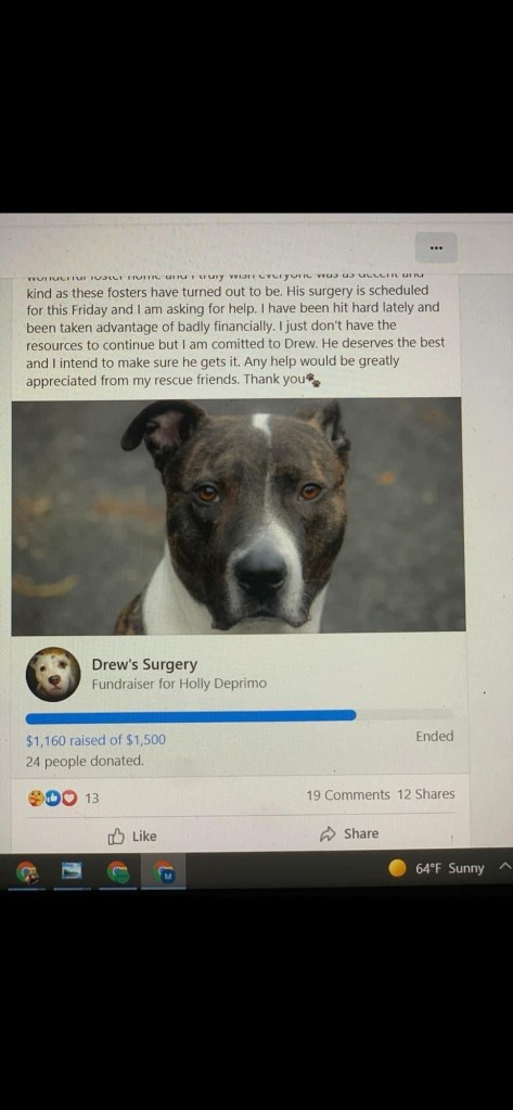 Holly Deprimo – the fact is….you are clueless as to what it costs to properly vet a dog. You have raised thousands and thousands of dogs via your GFM campaigns + collected the funds pledged to the dogs. A significant number of people who will NEVER work with you in rescue again.